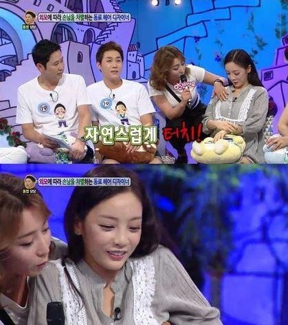 또한 방송 중 직접 재연을 해달라는 MC들의 부탁에 출연한 헤어디자이너는 무대 아래로 내려와 구하라에게 다가가 터치했다.