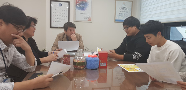 경기 수원시 팔달구 우만1동에서는 지난 23일 사회복무요원 2명이 참석한 가운데 '사회복무요원과의 간담회'를 개최했다. 이번 간담회는 사회복무요원의 노고를 격려하기 위한 자리로, 업무 애로사항의 청취는 물론 개인적인 고민을 상담하는 시간을 보냈다. 사진은 참여자들이 이야기를 나누고 있는 모습. (사진제공=팔달구청)