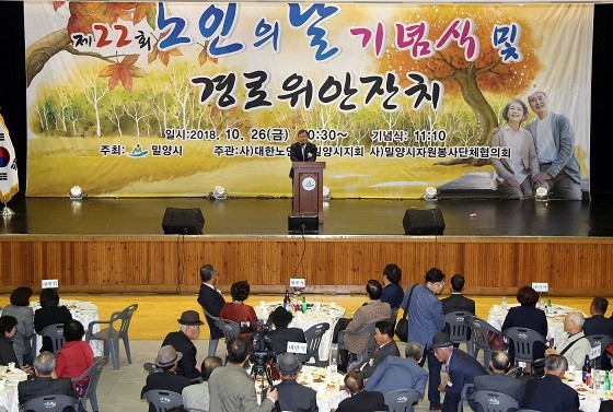 [ 밀양 =최성일 기자]밀양시는 밀양문화체육회관에서 ‘제22회 노인의 날 기념식 및 경로위안잔치’를 성황리에 개최했다.