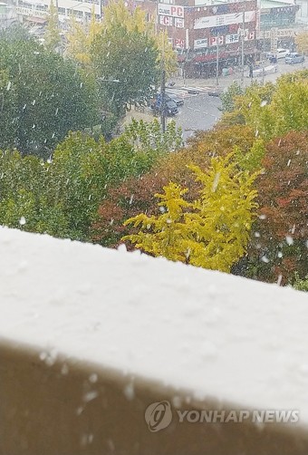 일요일인 28일 중부와 전북, 경북 지역에 가끔 비가 내리고 전남, 경남 지역에도 산발적으로 빗방울이 떨어진 가운데 이날 오후 서울 노원구 상계동의 한 아파트 단지에 우박이 내리고 있다.
