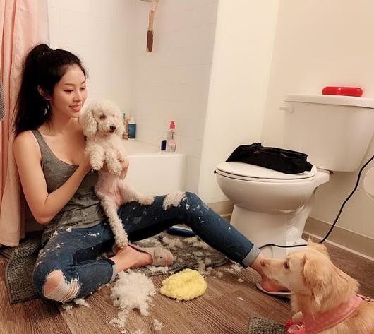 사진 속 서동주는 직접 강아지들 미용에 나선 모습이다. 특히 그녀는 카키색 민소매에 청바지를 매치해 털털하면서도 섹시한 패션을 선보이고 있다.