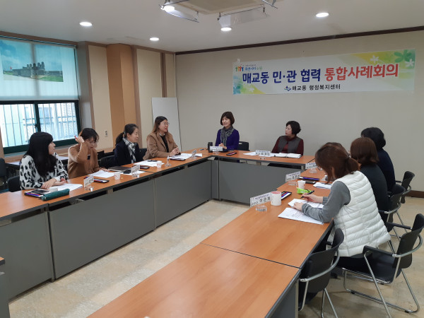경기 수원시 팔달구 매교동에서는 29일 사례관리가구에 맞춤형 복지서비스를 제공하기 위해 민·관 협력 통합사례회의를 개최했다. 이날 회의는 사례가구에 대한 종합진단과 적합한 서비스 내용을 협의해 해결방안을 모색하고 필요한 자원을 연계하는 형태로 진행했다. 사진은 참여자들이 이야기를 나누는 모습. (사진제공=팔달구청)