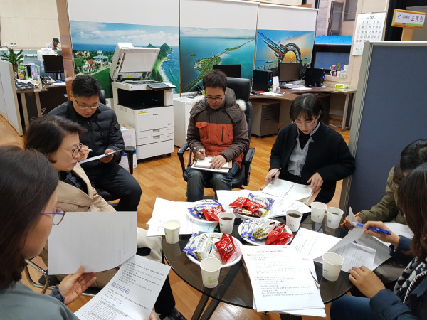 경기 안산시 단원구는 지난 29일 대부동 행정복지센터에서 직원들을 대상으로 ‘집단지성 감사 멘토링 서비스’를 실시했다. 이날 멘토링에서는 보안 업무 및 주민자치 담당자들이 참석해 업무 추진시 궁금했던 사항들을 묻고 답하는 시간을 가졌다. (사진제공=안산시청)