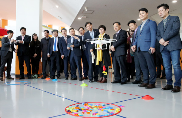 인천시의회 교육위원회 위원들은 지난 29일 강화군에 위치한 학생교육원을 방문해 학생 체험활동 시설을 확인하는 등 기관방문을 실시했다. 사진은 위원 및 관계자들이 드론을 조종해보는 모습. (사진제공=인천시의회)