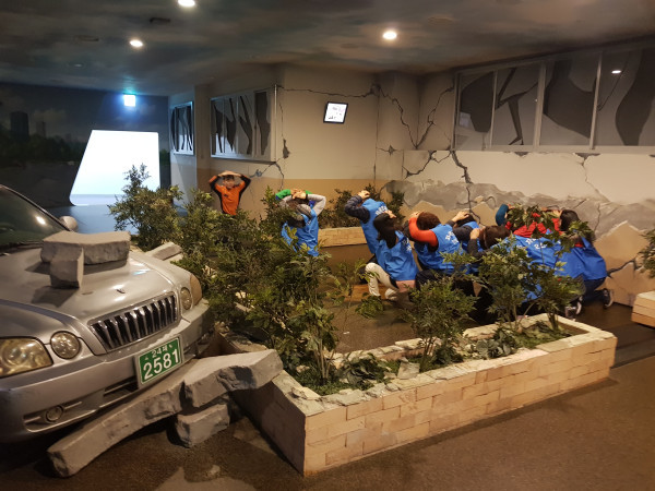 경기 오산시 지역자율방재단은 지난 30일 서울 동작구 소재 보라매안전체험관에서 지역자율방재단 60명이 참석한 가운데 재난안전체험 교육을 실시했다. 사진은 재난안전체험에 참석한 관계자들이 재난대피 체험을 하는 모습. (사진제공=오산시청)
