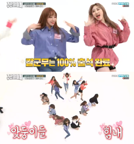 지난 10월 31일 오후 방송된 MBC에브리원 예능프로그램 '주간아이돌'에는 그룹 아이즈원(장원영, 미야와키 사쿠라, 조유리, 최예나, 안유진, 야부키 나코, 권은비, 강혜원, 혼다 히토미, 김채원, 김민주, 이채연)이 출연해 매력을 뽐냈다.