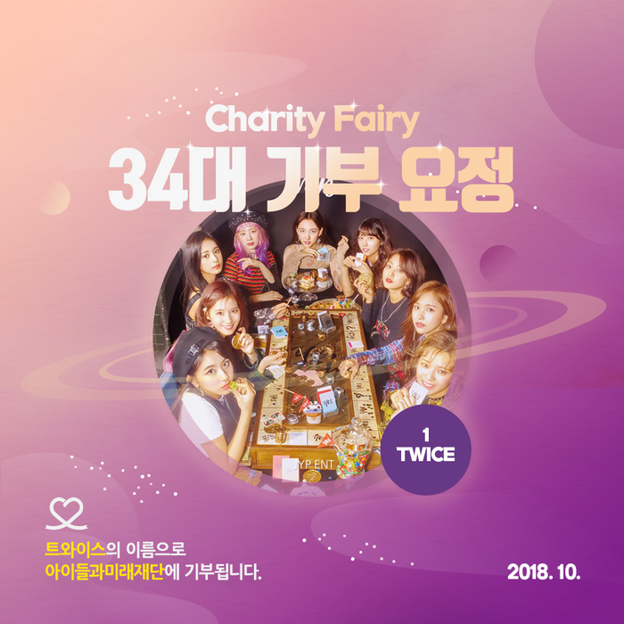 기부요정이 된 ‘강다니엘’, ‘미야와키 사쿠라’, ‘엑소’, ‘트와이스’ 각각 50만원씩 총 200만원을 ‘아이들과미래재단’에 기부를 진행한다.