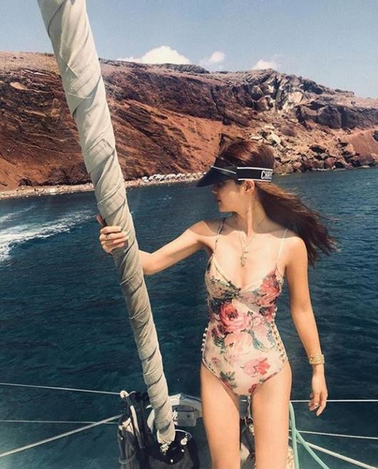 기은세는 과거 자신의 사회관계망서비스에 "산토리니 레드비치가 보이는 곳에서"라는 글과 함께 한 장의 사진을 게재했다. 공개된 사진 속 그는 요트 위에서 완벽한 수영복 몸매를 뽐내고 있다.