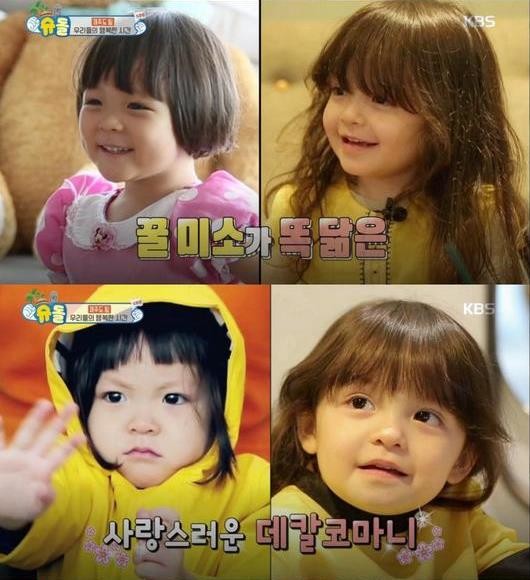 사랑이와 나은이는 러블리한 미소로 닮은 꼴을 인증했다. 8살인 사랑이와 4살인 나은이는 네 살 차이가 난다.