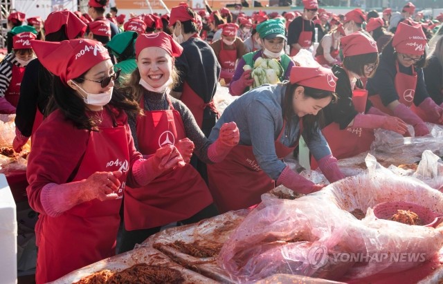2일 오후 서울광장에서 열린 5회 서울김장문화제에서 참가자들이 김장을 하고 있다.