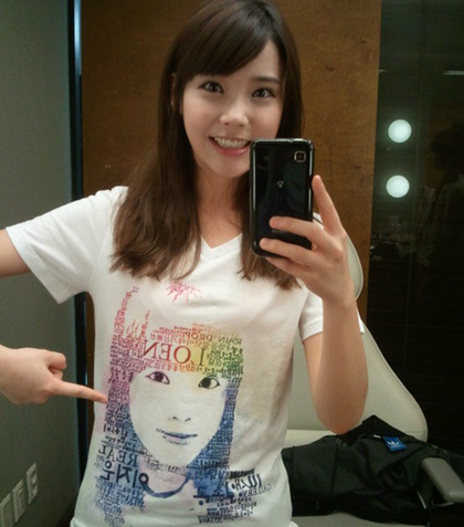 사진 속 아이유는 자신의 얼굴이 그려진 티를 입고 해맑게 웃으며 사진을 찍고 있다.