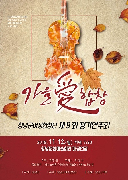 “가을愛 합창”이라는 주제로 열리는 이번 연주회는 박영환 지휘자의 지휘아래 ‘아름다운 세상’, ‘홀로아리랑’, ‘사노라면’등 평소 우리 귀에 익숙한 대중가요와 뮤지컬 음악인‘Can you feel the love tonight’을 포함한 다양한 장르의 음악들을 여성합창단의 섬세하고 아름다운 하모니로 선보인다.
