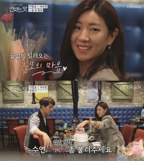 지난 10월 25일 방송된 TV조선 예능프로그램 '연애의 맛'에서 이필모가 서수연에게 꽃 프러포즈를 하는 모습이 전파를 탔다.