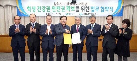 창원시와 경상남도교육청은 지난7일 미세먼지에 선제적으로 대응하고 창원지역 학생들의 안전한 교육환경을 조성하기 위해 ‘학생 건강권과 안전권 확보’를 위한 업무협약을 체결했다.