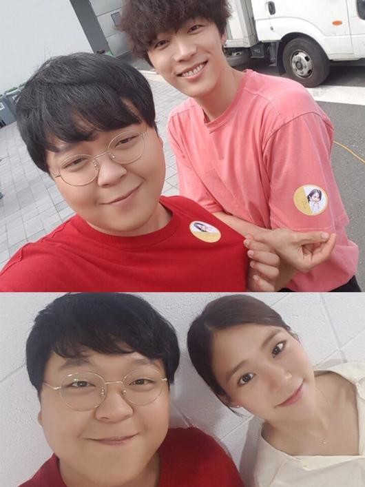 공개된 사진 속 유준홍은 신현수와 함께 티셔츠에 한승연 얼굴이 담긴 스티커를 붙이고 사진을 찍어 웃음을 자아냈다. 이어 한승연과 만나 수줍은 미소를 보여 눈길을 끈다.