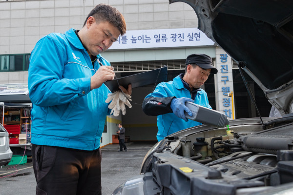 서울 광진구는 7일 오전 10시~오후 3시 광장동 소재 행정차고지 앞에서 ‘동절기 대비 자동차 무상점검’을 실시했다. 구가 지원하고 서울시자동차전문정비사업조합 광진구지회와 기아자동차 주관으로 실시한 이번 행사는 파견된 전문 정비사 20여명이 진행했다. 사진은 정비사들이 자동차를 점검하는 모습. (사진제공=광진구청)