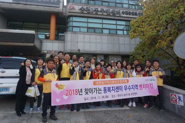 경기 오산시 대원동 지역사회보장협의체가 지난 6일 지역복지 우수기관인 전북 전주시 송천1동 주민센터를 방문해 센터 성공의 노하우를 벤치마킹 했다. 사진은 대원동 보장협의체 관계자들이 송천1동 주민센터에서 기념촬영을 하는 모습. (사진제공=오산시청)