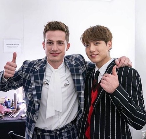 방탄소년단 정국이 세계적 스타 찰리 푸스와 엄지척 인증샷을 공개했다.