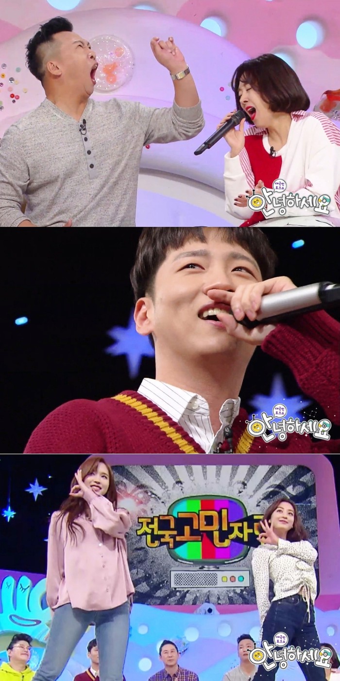11일 밤 방송되는 KBS 2TV ‘대국민 토크쇼 안녕하세요’에는 개그계의 대표 잉꼬부부 박준형과 김지혜, 말끔한 대학 선배 같은 훈훈한 외모로 ‘남친짤’을 무한 생성하는 래퍼 한해 그리고 ‘답정너’ 예스를 외치게 만드는 트와이스의 지효와 미나가 게스트로 참여해 고민되는 사연을 듣고 함께 해결방안을 찾는 시간을 갖는다.
