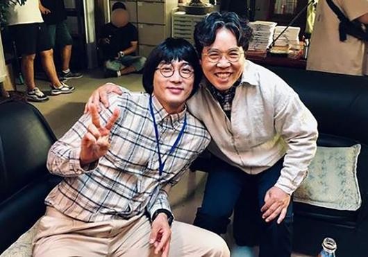 공개된 사진속 송승헌은 정은표와 함께 어깨동무를 하고 있는 모습이다. 특히, 달라진 송승헌의 스타일에 시선이 집중됐다.