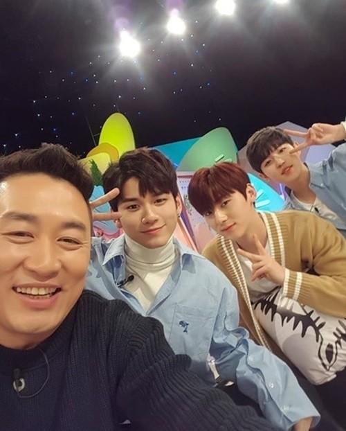 공개된 사진에는 KBS2 '대국민 토크쇼 안녕하세요' 녹화장을 찾은 옹성우, 황민현, 김재환의 모습이 담겨있다. 정찬우가 가장 앞으로 나와 있긴 하지만 확연하게 비교되는 얼굴사이즈가 보는 이들의 웃음을 자아낸다.