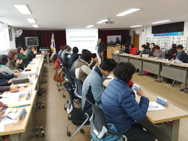 인천 미추홀구는 오는 23일까지 지역내 5개동에서 통장 인권교육을 실시한다. 인권교육은 주안8동을 시작으로 지난 9일 용현5동, 12일 주안2동에서 진행됐다. 사진은 용현5동에서 교육이 진행 중인 모습. (사진제공=미추홀구청)