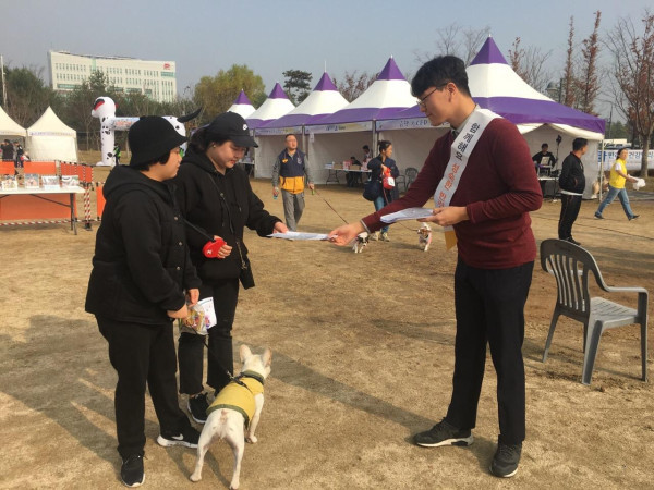 경기 수원시 권선구는 구청 인근 대부둑공원에서 지난 10일 ‘더불어 함께하는 반려동물 문화 조성 캠페인’을 실시했다. 이날 캠페인은 반려인·봉사단체 회원 등 20여명이 참여했으며, 수원시에서 주최하는 ‘2018 수원 반려동물 한마음축제’가 진행되는 동안 행사에 참여한 시민들에게 동물보호법 개정사항 및 반려동물 펫티켓 등을 홍보했다. (사진제공=권선구청)