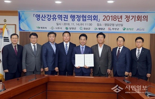 이 날 정기회의는 전동평 영암군수를 비롯한 강인규 나주시장과 김산 무안군수 등이 참석한 가운데 新영산강 역사문화도시 조성사업 기본계획 수립 용역 최종보고회와 2019년 공동 추진사업에 대해 논의했다.