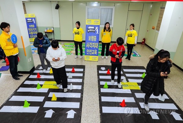 14일 인천 미산초등학교에서 열린 쉐보레와 세이프키즈코리아의 '사각사각 어린이 교통안전 캠페인'에서 학생들이 보행자 안전교육을 받고 있다.