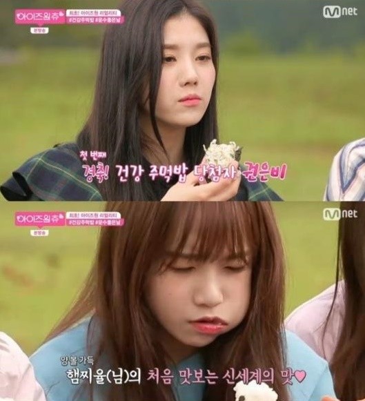 권은비와 조유리는 우메보시를, 강혜원은 명란젓이 들어있었다. 특히 조유리는 우메보시 주먹밥을 먹고 부르르 떨어 웃음을 자아냈다.