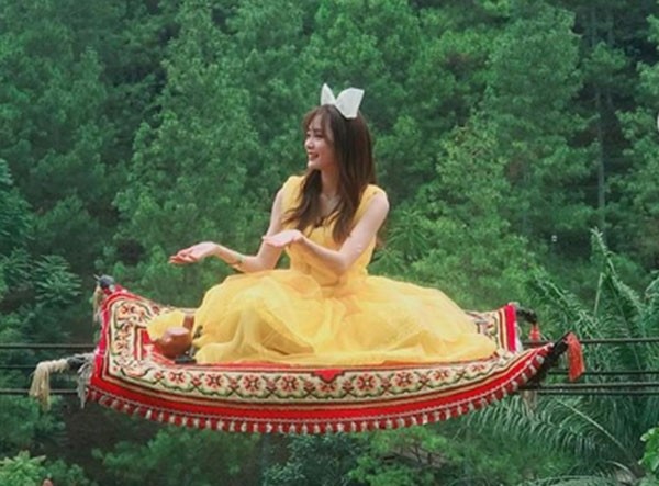사진 속에는 송다은과 개그맨 이수지가 놀이공원에서 즐거운 시간을 보내는 모습이 담겨 있다. 특히 송다은은 노란색 공주 드레스를 입고 하늘을 나는 양탄자에 앚아 빼어난 미모를 자랑했다.