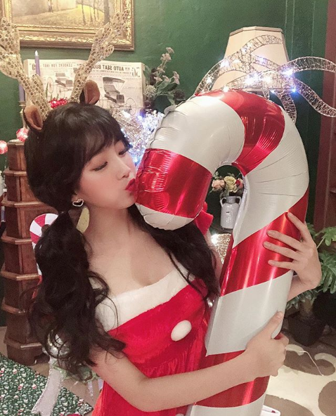 공개된 사진 속 안지현은 다가올 크리스마스를 맞아 섹시 산타로 변신한 모습. 안지현은 루돌프 뿔장식이 달린 머리띠와 사탕 장식 모양의 풍선을 들고 크리스마스 분위기를 물씬 풍겼다.