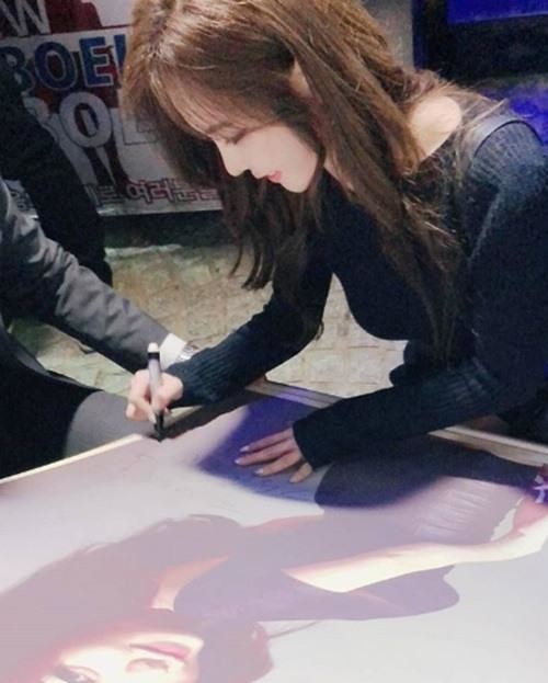 사진 속 강예빈은 공연이 끝난 후 사인을 하고 있는 모습으로, 청순 글래머러스한 옆모습이 시선을 사로잡았다. 강예빈은 사진과 함께 “#강예빈#보잉보잉#브로마이드#감사해요#공연이끝나고 공연 끝나고 포토타임에 브로마이드를 직접 가져와주셔서 너무 감동했어요~^^ㅋ 더 열심히 해서 웃겨 드릴게요~^^ㅋ 보잉보잉 많이 보러 오셔요~”라는 글을 올렸다.