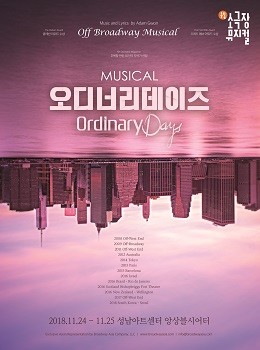 뉴욕 드라마티스트 매거진에서 ‘주목할만한 50인 작곡가’ 중 한 명으로 선정된 아담 그완(Adam Gwan)의 21곡 넘버로, 우리와 꼭 닮은 뉴오커들의 이야기를 감성적으로 풀어낸 송스루(Song-through : 대사 없이 노래와 음악으로만 극을 진행하는 뮤지컬) 작품인 <오디너리데이즈>는 지난 2008년 영국 오프웨스트엔드를 시작으로 미국 오프브로드웨이, 오스트레일리아, 일본, 프랑스, 브라질 등 유럽과 미국을 넘어 5대륙에서 200회 이상 공연했다.