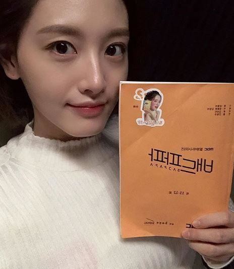 사진 속 김재경은 드라마 '배드파파' 대본을 들고 카메라를 응시하고 있다.