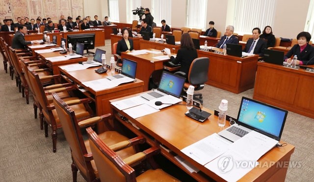 국회 문화체육관광위 전체회의가 20일 오전 열리고 있다. 자유한국당과 바른미래당의 의사일정 보이콧으로 야당의원석이 비어 있다.