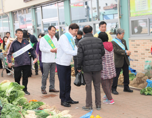 22일 전남 보성군이 녹차골 보성향토시장에서 군민의 안전사고 피해 최소화 및 선진 안전문화의식 정착을 위해 ‘교통사고·화재예방 안전캠페인’을 펼쳤다. 사진은 김우철 군수(가운데)가 시민들에게 캠페인을 펼치고 있는 모습. (사진제공=보성군청)