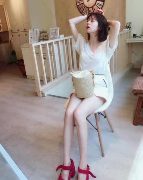 사진 속 정소민은 화이트 의상에 청순한 미모, 인형 각선미가 인상적이다.