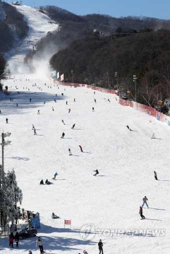 강원도 내 주요 스키장이 개장한 23일 강원 평창군 휘닉스평창스노우파크에서 스키어와 스노보더들이 은빛 슬로프 위를 질주하고 있다.