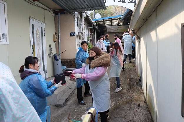 참여자들은 차량 접근이 어려운 골목길은 손수레를 이용해 연탄을 나르고 지원 세대 입구에서 일렬로 늘어서 차곡차곡 연탄을 쌓았다.