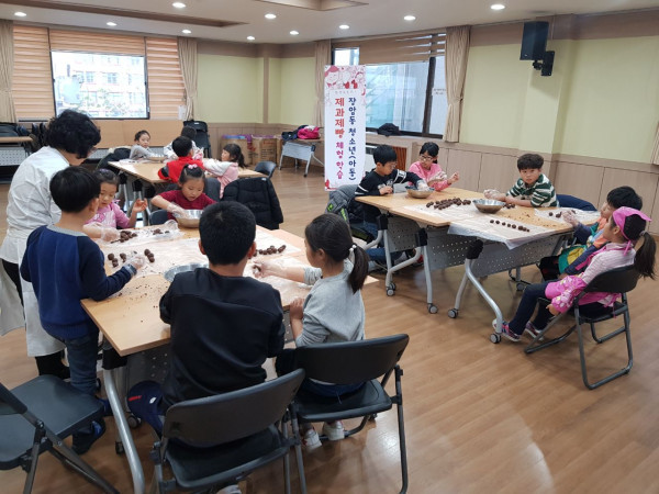 경기 의정부시 장암동 주민센터는 최근 장암동 주민센터 3층 대회의실에서 지역내 아동 청소년(7~12세) 및 주민자치센터 수강생을 대상으로 '제과제빵 체험학습' 시간을 보냈다. 사진은 어린이들이 초코볼을 만들고 있는 모습. (사진제공=의정부시청)