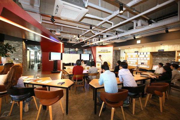 | ▲ 사회적경제지원센터에서 열린 사회적경제한마당 토론회에서 강사가 강의를 진행하고 있다. (사진제공=동작구청) | ||