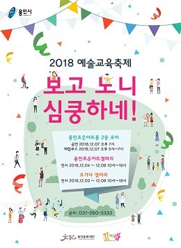 [용인=오왕석 기자](재)용인문화재단(이사장 백군기)은 오는 12월 4일부터 5일 간 용인포은아트홀 로비와 용인포은아트갤러리 일대에서 용인문화재단의 예술교육 수강생들이 모두 모이는 <2018 예술교육 축제 – 보고노니 심쿵하네>를 개최한다.