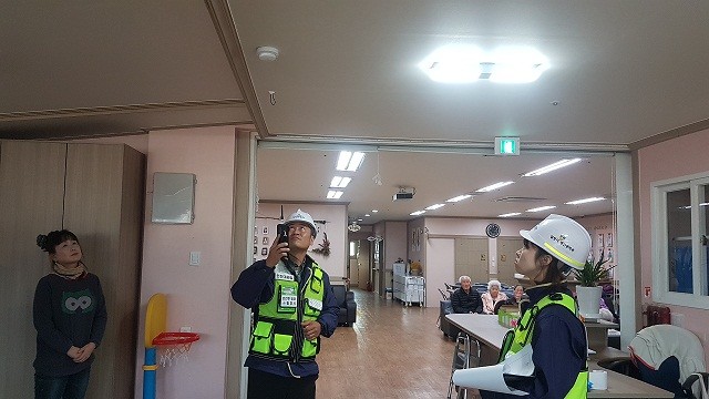 | ▲ 사진 - 명성노인요양원 연기감지기, 스플링클러 설치 여부를 확인하고 있다. | ||