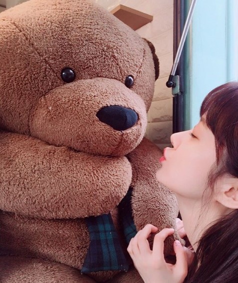 장나라는 지난 11월 7일 자신의 인스타그램에 "커피차에 있던 곰돌씨"라는 글과 사진을 게재했다. 공개된 사진 속 장나라는 곰인형을 향해 입술을 쭉 내밀고 있다.