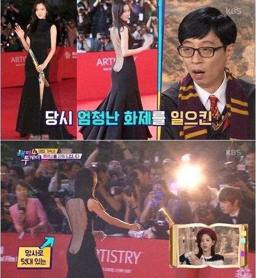 이를 본 MC 유재석이 "이 사진을 본 적이 있는데 강한나씨 일 줄 몰랐다. 너무 화제가 됐던 드레스 아니냐"면서 당시 해당드레스를 입은 여배우가 강한나인지 몰랐다는 반응을 보였다.