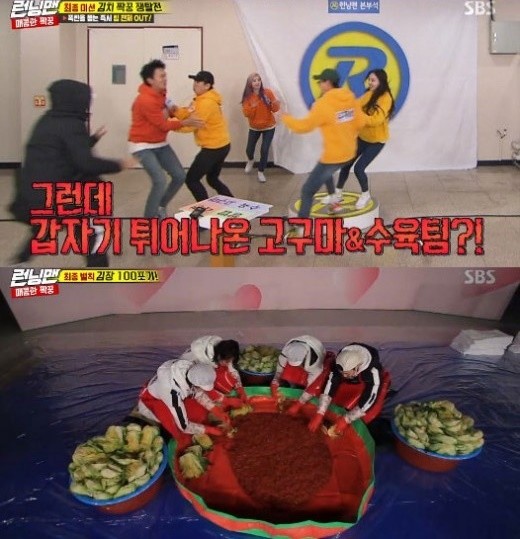 이날 트와이스 멤버들과 함께 네 팀으로 나뉜 ‘런닝맨’멤버들. 힌트를 얻을 수 있는 배춧잎을 획득하기 위해 게임에 임했다.