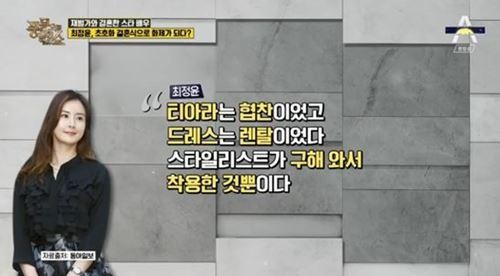 당시 최정윤은 tvN '현장토크쇼 택시'에 출연해 부짓집 딸 소문을 해명했다.