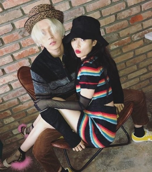 현아는 지난 4일 자신의 SNS에 아무런 코멘트 없이 여러 사진을 게재했다. 공개된 사진에는 무지개가 그려진 투피스 원피스를 입은 현아가 남자친구 이던에 안겨있는 모습이다.