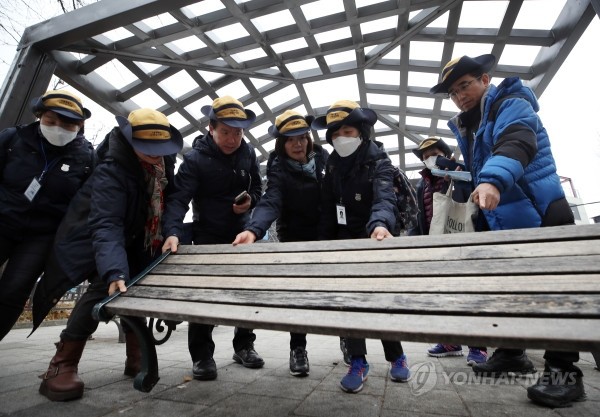 서울시 안전보안관 대원들이 6일 서울 마포구 홍익대 인근에서 시설 안전점검 등을 하고 있다.